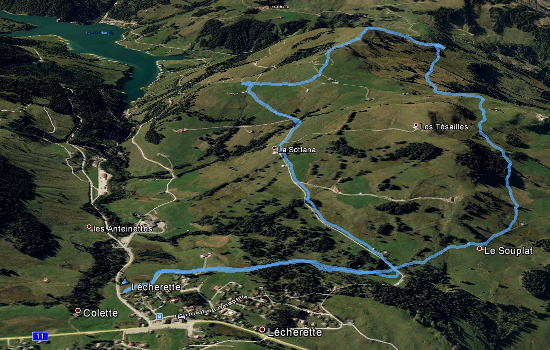 Pour rejoindre le départ depuis le centre de La Lécherette, longer la route secondaire en direction de la caserne sur env. 250 m (y a un panneau jaune de l’armée). Le départ est à la hauteur du totem de l’Espace Nordique. Monter jusqu’aux Mossettes