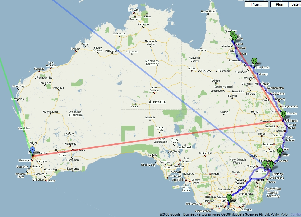Programme des 3 semaines en Australie: PERTH: 3 jours Vol interne: PERTH – CAIRNS Location d’un camping car pour faire CAIRNS – SYDNEY Itinéraire provisoire: